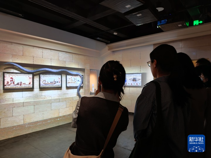 2月5日,观众观看展览中的“尼罗河的赠礼——古埃及文物与数字艺术体验展”数字影像。新华社记者 邓瑞璇 摄