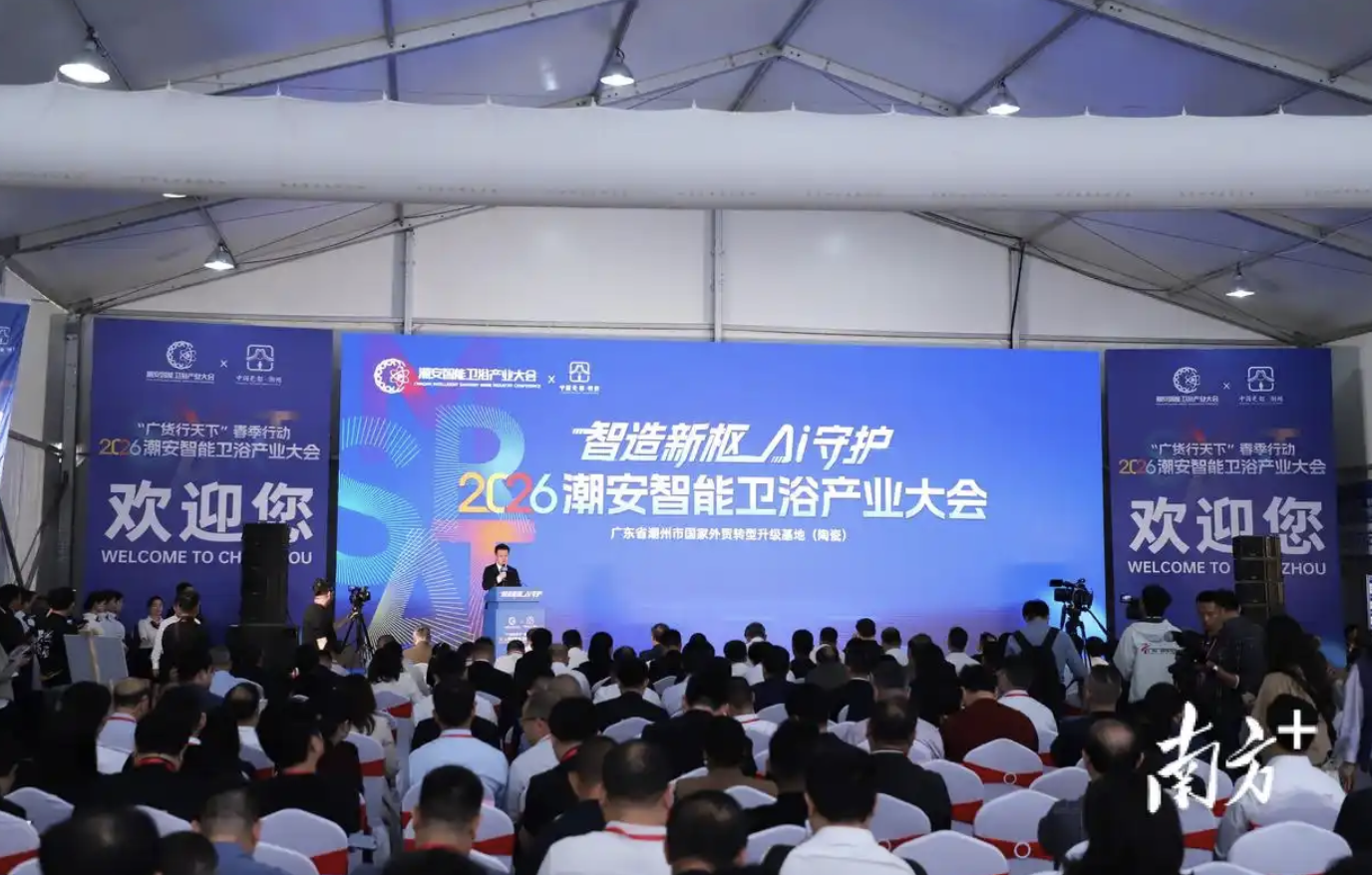3月26日上午,“广货行天下”春季行动智能卫浴潮州专场暨2026潮安智能卫浴产业大会在潮安区古巷镇启幕。这场为期五天、以“智造新枢·AI守护”为主题的大会,通过政策发布、产业展销、论坛研讨、新品推介等形式,集中展示潮州智能卫浴的产业实力、创新成果,推动广东智能制造与消费升级深度融合,助力“广货行天下”。