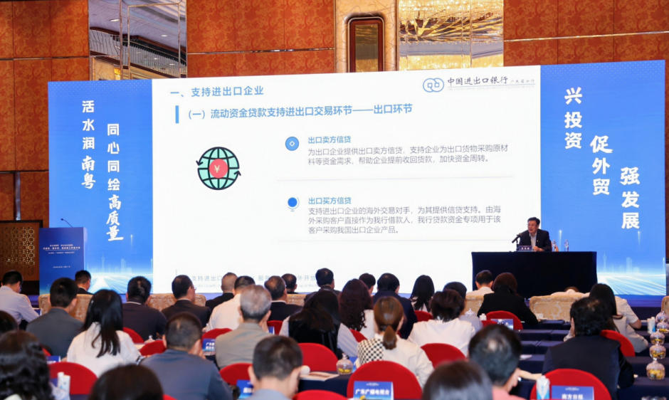 4月9日,由广东省商务厅和进出口银行广东省分行、深圳分行联合主办的“活水润南粤,同心同绘高质量”——“兴投资、促外贸、强发展”工作宣介会在广州举行。进出口银行党委委员、副行长陈斌,广东省商务厅等政府部门、重点合作企业有关负责人出席会议。