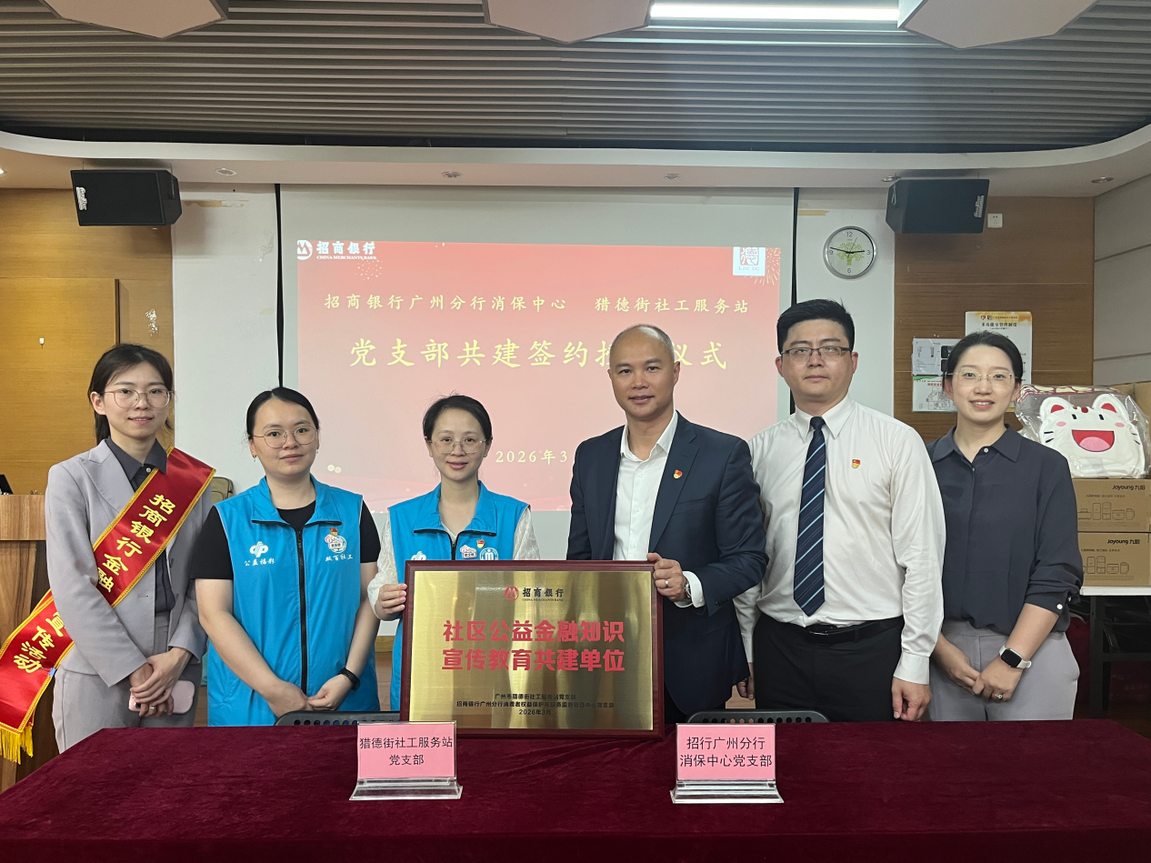 为深入践行“金融为民”初心使命,切实把金融知识普及、消费者权益保护工作落到基层、服务群众,近日,招商银行广州分行消保中心党支部与猎德街道社工站党支部,举行社区公益金融宣教共建单位签约暨授牌仪式。双方以党建为纽带,携手搭建社银联动金融服务平台,同步开展老年志愿者公益金融知识宣讲活动,并为志愿者颁发荣誉证书,以实际行动推进“我为群众办实事”走深走实,守护社区居民财产安全。