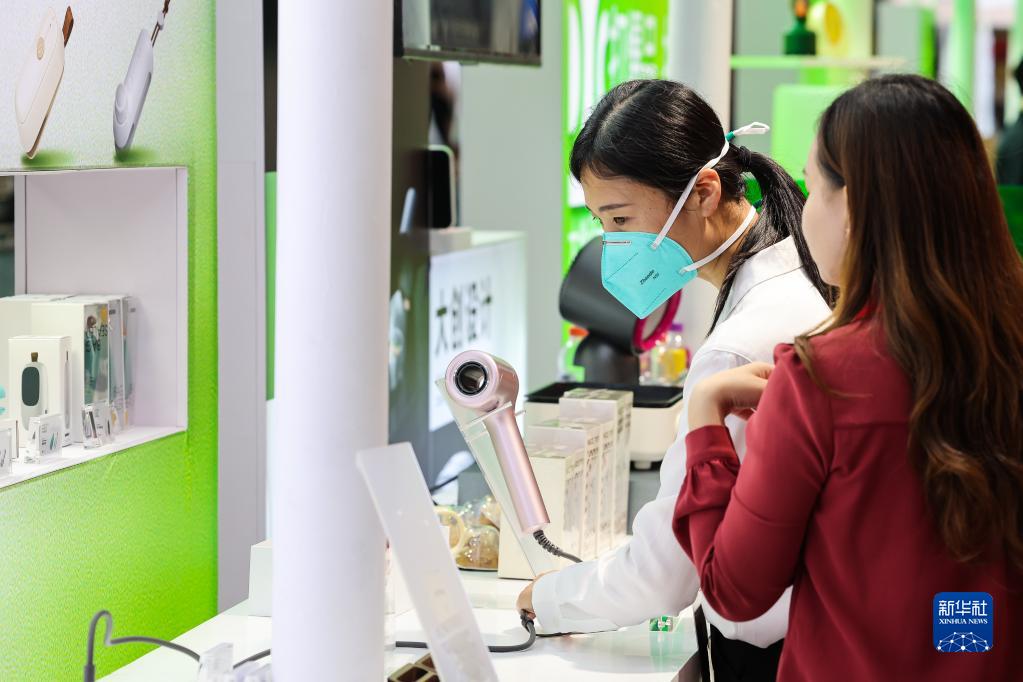4月15日,采购商在第133届广交会上了解一家中国工业设计企业的小家电展品。