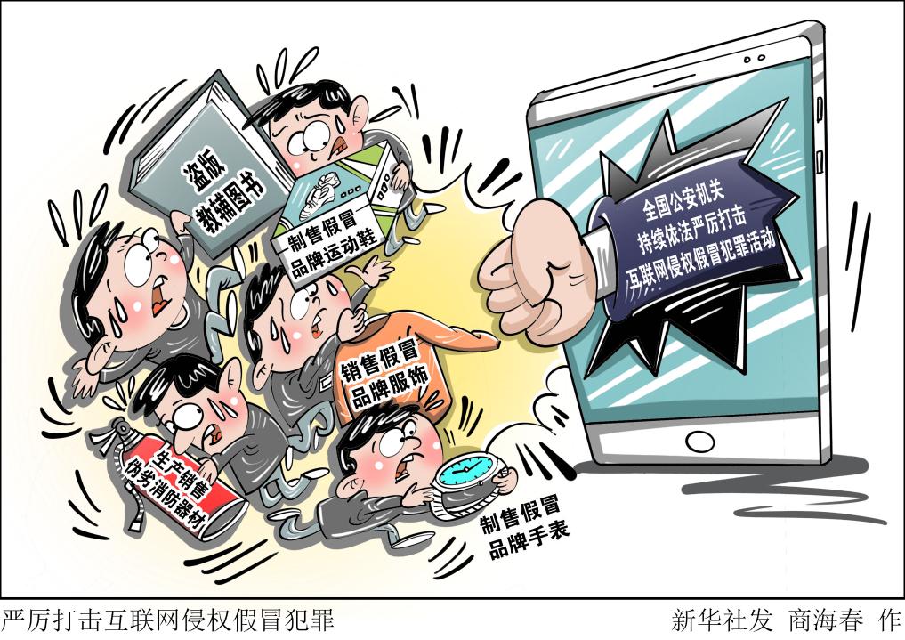 记者11月8日从公安部获悉,今年以来,按照公安部统一部署,全国公安机关持续依法严厉打击互联网侵权假冒犯罪活动,共破获相关案件1700余起,集中打掉一批利用网购模式进行欺诈式售假的犯罪团伙。公安部8日公布打击网上侵权假冒犯罪10起典型案例。10起网上侵权假冒犯罪典型案例包括盗版教辅图书、销售假冒品牌服饰、生产销售伪劣消防器材、制售假冒品牌运动鞋、制售假冒品牌手表等。新华社发 商海春 作