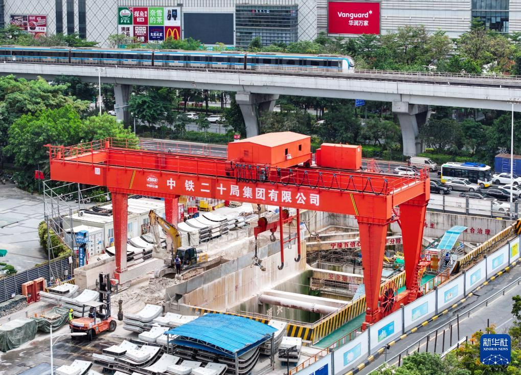 深圳地铁16号线共建管廊项目一处综合井紧临地铁线路(10月17日摄,无人机照片)。
