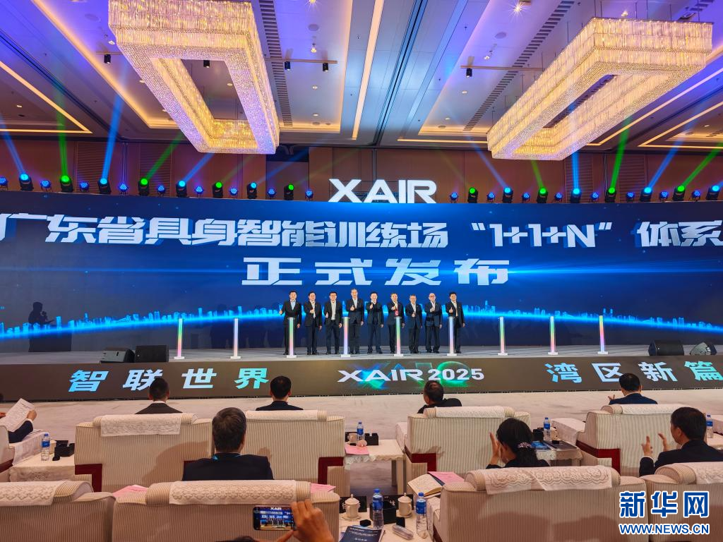 XAIR大会现场发布广东省具身智能训练场“1+1+N”体系。新华网 伍嘉炜 摄