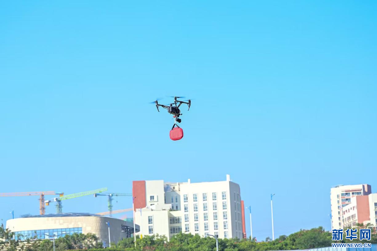 无人机在运送模拟医疗救援包。新华网发(大赛组委会 供图)