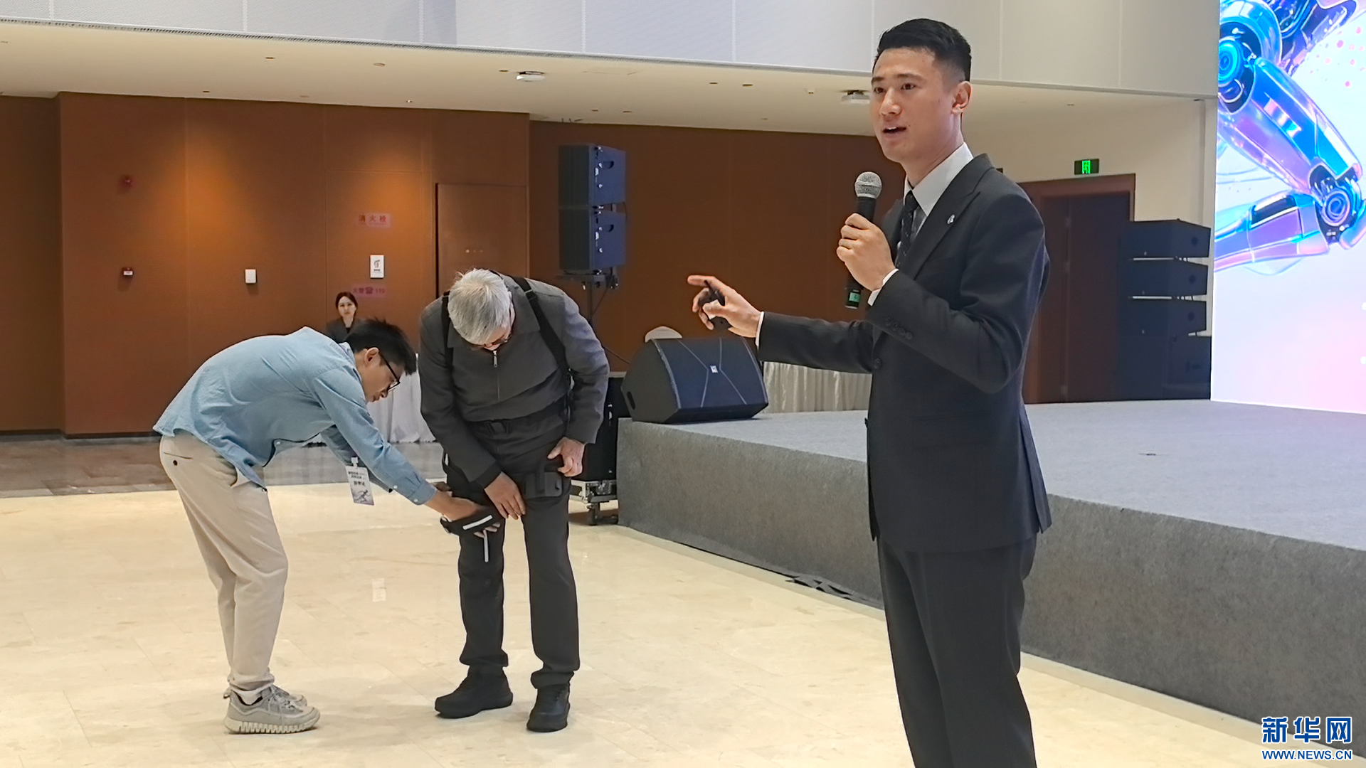 参赛选手展示的可拼装外骨骼设备。新华网 魏晓航 摄